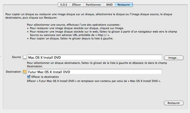 Il est possible de copier son disque d’installation (ou toutes autres images disque Mac OS X, ou Mac OS X Server) sur le disque dur.